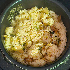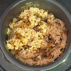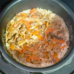 釜めし(キノコの炊き込みご飯と生姜煮)