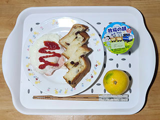 クリームシチュー、ガーリックバターバゲットトースト、ガーリックバターライス