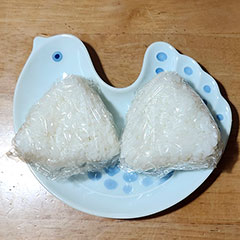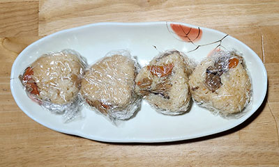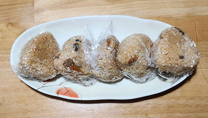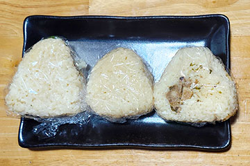 もち麦ご飯と麦味噌たくあんのおにぎり