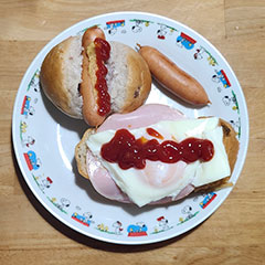 ミニホットドッグ&ピスタチオ&アーモンド&ピーナッツ・トーストないしサンド