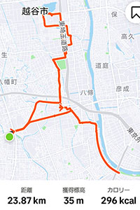 色々とルートを試して次第に距離が短くなり、今年は国道バイパス(東埼玉道路)がリニューアルされて走りやすくなり、なんと16km弱と最短になりました!当初は往復40km超えでしたが、今は往復32km弱です。