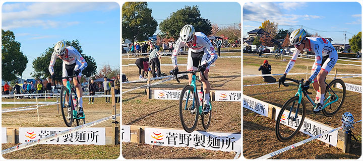 松伏緑の丘公園のコースを走るシクロクロス日本チャンピオン、織田聖選手/2024.11.30