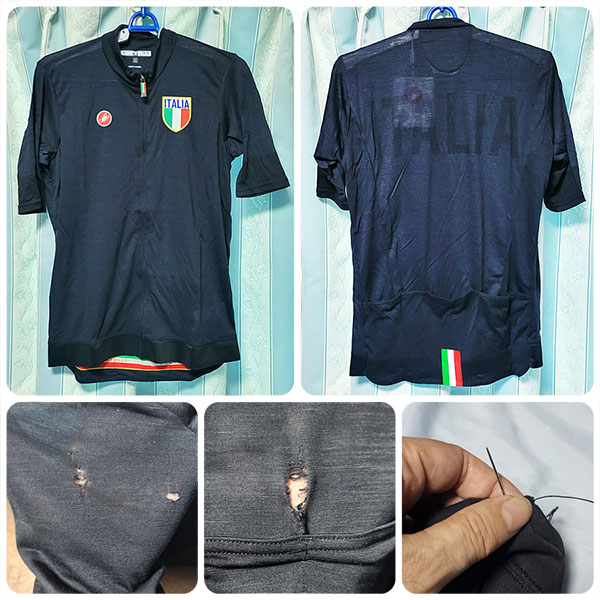 30着のサイクルジャージで最も気に入っている、カステリのイタリア2.0に6ヶ所も穴が空いてしまった!