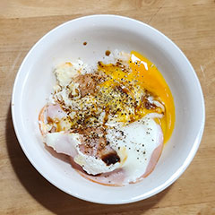 帰宅後、ハムエッグを作って母に出す。家族用はハムエッグサンド。
