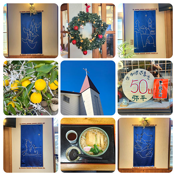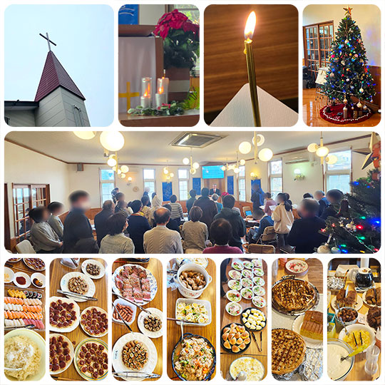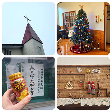 母と妻と僕の3人で、今年最後の教会の礼拝に行く。
