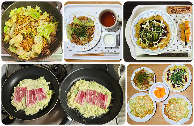 夕飯にはお好み焼きを作る・・なんかお祭りの屋台みたいなメニューになりました(^^;