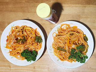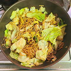 お昼ご飯に、(母が飽きている配食弁当の代わりに)キャベツを大量に入れた焼きそばを作る。
