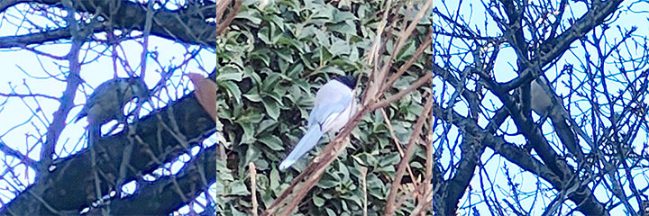 「珍しい鳥の鳴き声が聴こえるな?」と思って木の方をみたら、やはり尾長(オナガ)でした!何羽も!