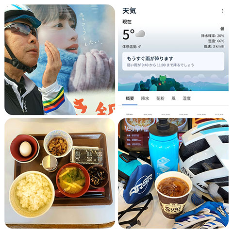 気温1℃、体感温度は氷点下1℃。風を受ける走行時は、更にそれ以下。