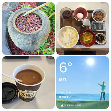 起床後、朝散歩、プチ筋トレ、デボーション、朝食、珈琲と言ういつもルーティーン。