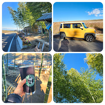 今年最後の週末ライド、ピナレロ号で竹林カフェ風へ。味噌おにぎりとホット珈琲をいただく。