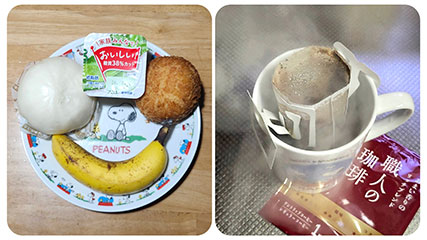 肉まん、バナナ、ヨーグルトで、エネルギーとたんぱく質補給して、さあスタート!