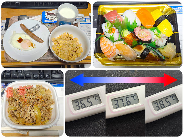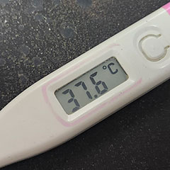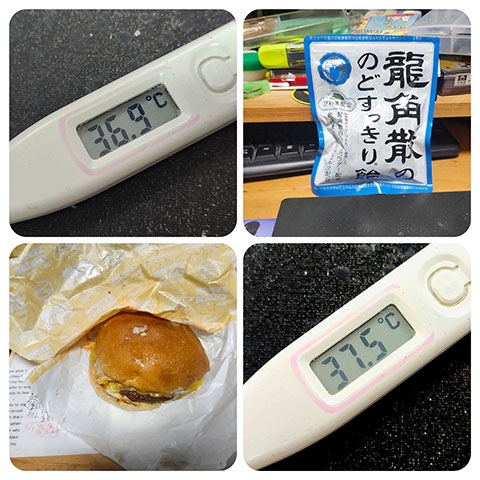 喉が痛くなり始め、お昼に36.4度だった体温は徐々に36.9度に上がり、現在は37.5度。