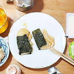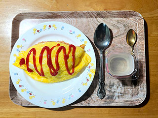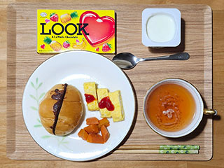 パパ玉子焼きとヨーグルトとおやつのルックチョコを添えて。