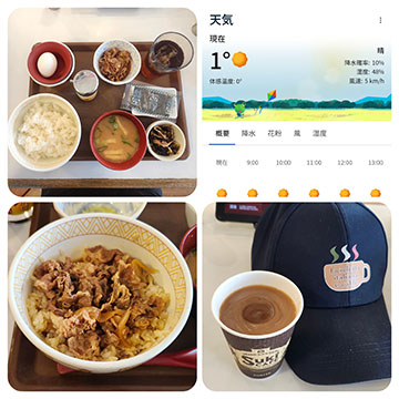 その後、遠回りして今年2度目のすき家の朝定食。海苔巻きご飯、玉子かけご飯、牛丼の3種のご飯を楽しむ。