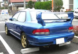 初代WRX-STiタイプRAの巨大なリアウィング(地元市内にて)