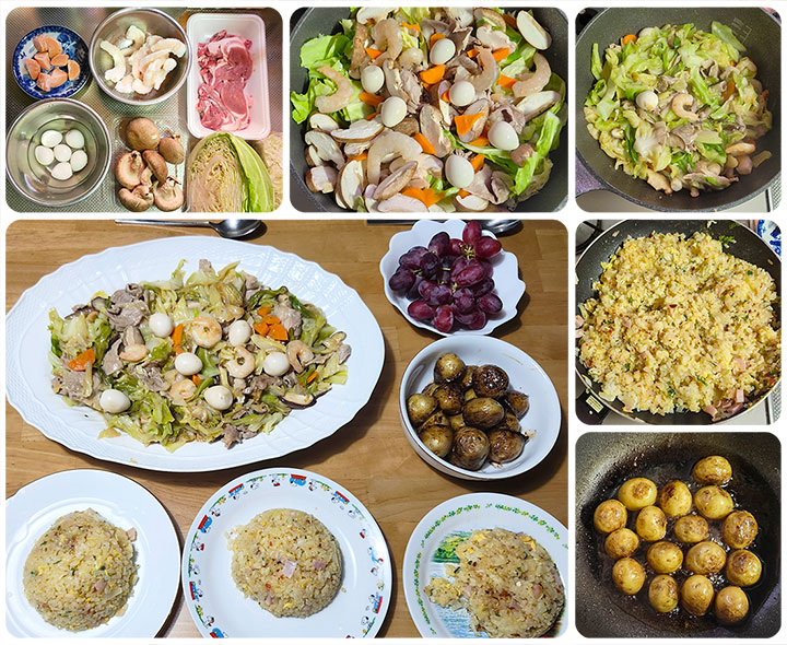 八宝菜、黄金炒飯、新ジャガのコロコロ炒め