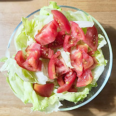 ①サラダ菜・トマト・生ハム・チーズのサラダ