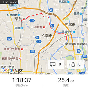 どうも最近、Stravaの調子が悪い。往路、途中で計測が止まってしまい計測を断念。帰路はスマホ&アプリを再起動して、往路と同じルートで帰還して、距離を再計測。往復31kmライドでした。