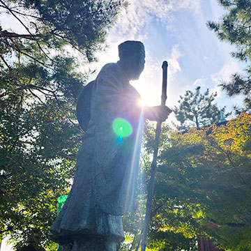 日本の道百選にして国の指定名勝地の草加松原の松並木を背景に。