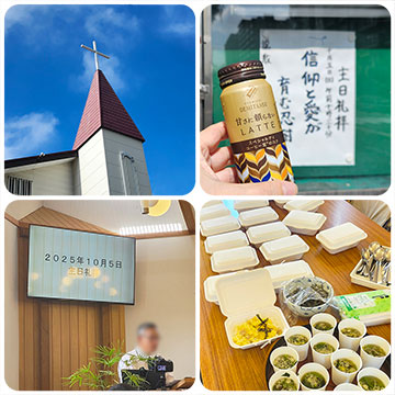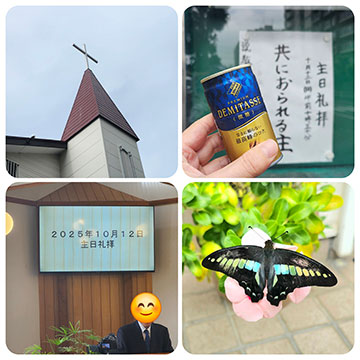 町内清掃、母の朝食作りの後、嫁さんと母と教会へ。