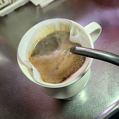 朝食は、最近のマイブームのすき家まで足を伸ばす。食後は、フェアトレード珈琲♪