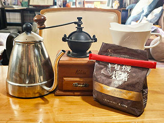 未だに散歩道の自販機には冷たい珈琲しかないので、帰宅後、京都小川園の有機栽培豆を挽いて淹れました♪