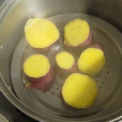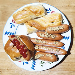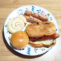 帰宅後、朝食。シャウエッセンを茹でて、ミニホットドッグを作る。