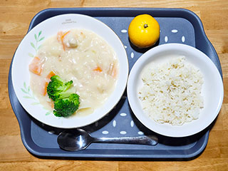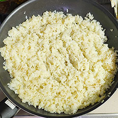 クリームシチューの時は、いつもはフランスパンのガーリック・バターバゲットを作るのですが、母は固いパンが難しいので、今日はニンニク・バター・塩・胡椒でガーリックバターライスを作る。