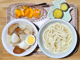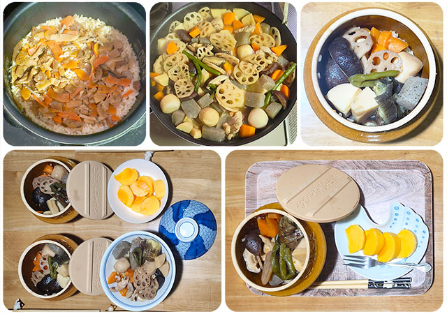そして今回第三弾は、五目炊き込みご飯&筑前煮。デザートは柿♪