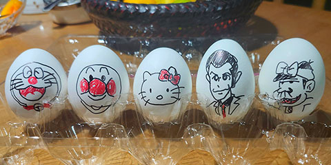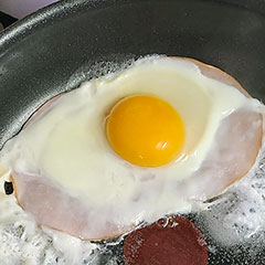 帰宅後、ハムエッグを作って母に出す。家族用はハムエッグサンド。