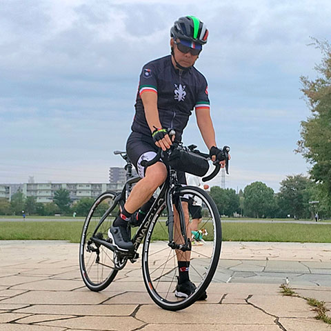 普通のサイクルジャージではなく完全にレース用で、向こう側が透けるほど薄い。