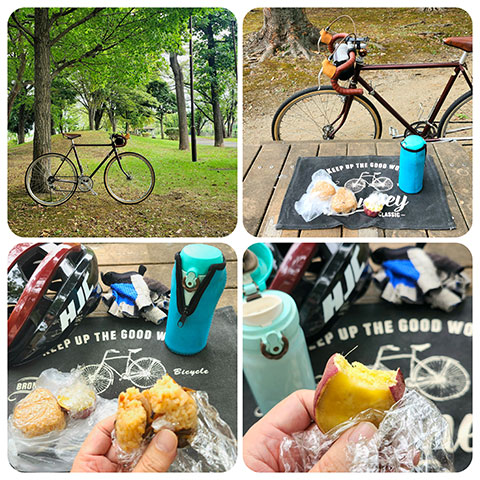 少しワークルームから離れた方が良いと判断し、母にランチを出した後、キノコ炊き込みご飯で作ったおにぎりとシルクスイートとルイボスティーをバックパックに入れて、ランドナーで隣町まで足を伸ばすプチデイキャンプライド。