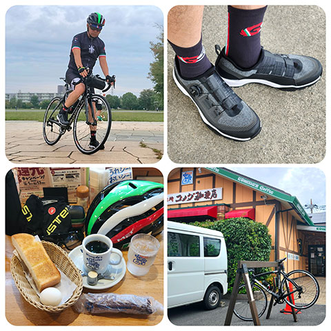 買ったばかりの新ジレ(※防風・防寒ベスト)を着て、先日クリート調整を終えたシマノの新ボアシューズで。