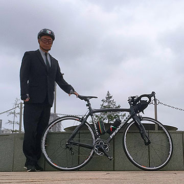 その後、3年前に内部構造をゼロから自分で修復した専用ポンプ、およびランドナー専用に買ったステンレスボトル&フロントバッグを装着したフル装備状態、かつランドナーのブラウン色に合わせて買ったHJCのヘルメットを被って、記念撮影ライドに出る。