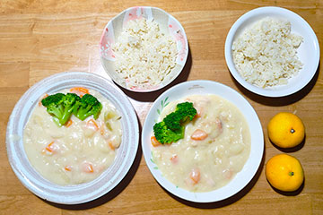 今日のパパ夕飯は、鶏団子鍋、おでんに続く、秋冬料理の第三弾、クリームシチュー♪