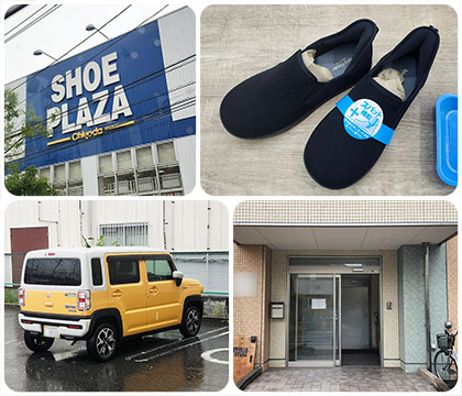 なので靴屋さんに行き、かがんだり、手を使わなくてもた立ったまま履ける(&脱げる)、しかも左右同型で幅広と言う、これ以上無い優れモノの靴を買う。上履きとしてはちょいと高価ですが。 直ぐにメモ書きと共に施設にお届け。